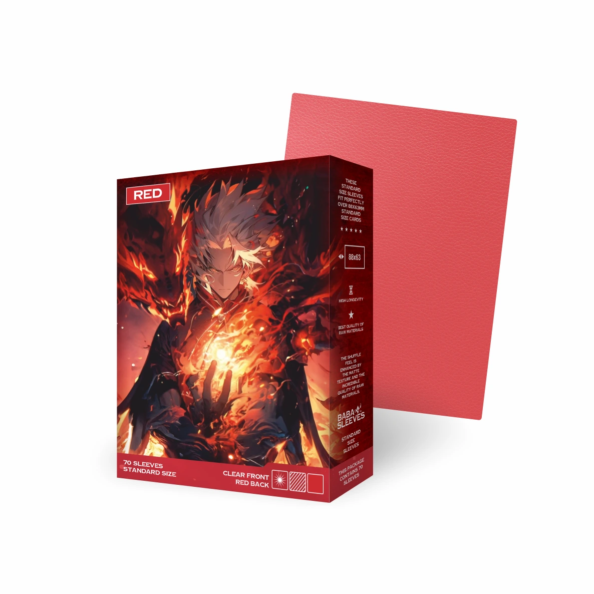 70 Baba Sleeves Standard Size Hüllen der Farbe Matt Rot/ Matte Red